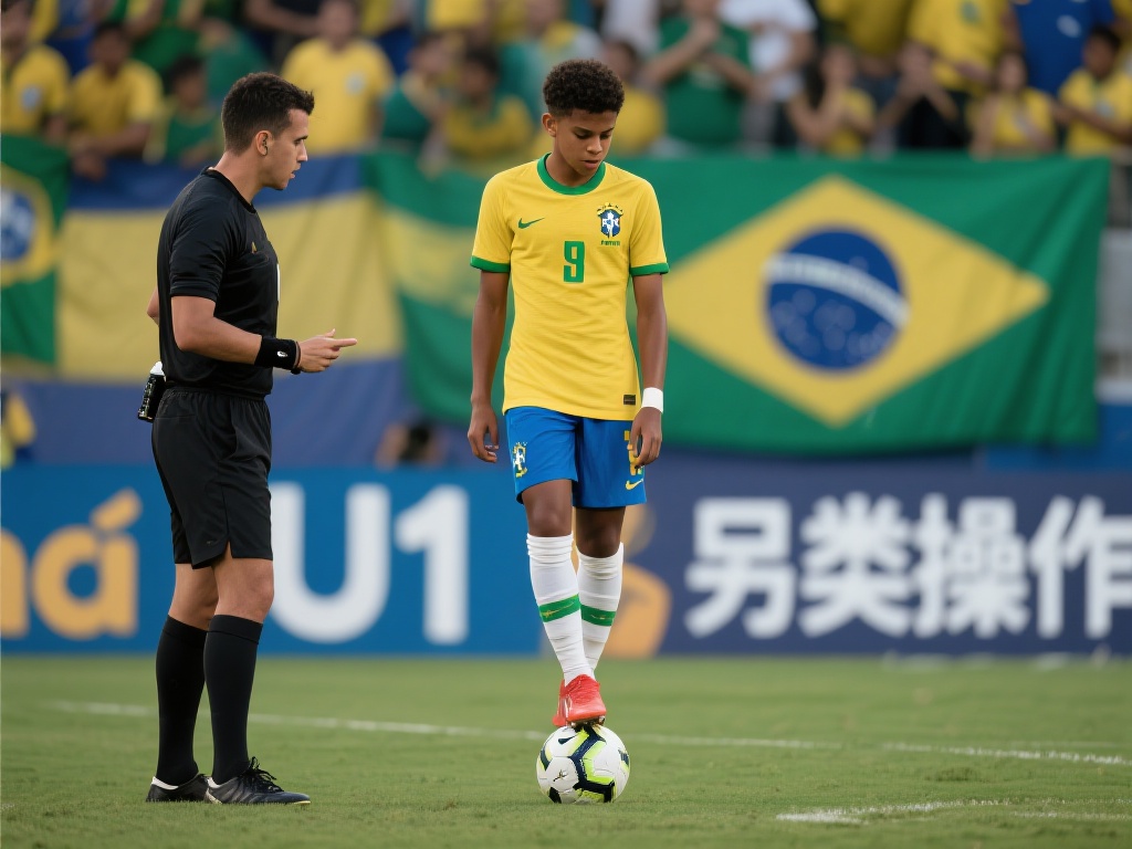 裁判果断吹停黄牌警告,巴西U17球员另类行为引发热议 在足球赛场上,球员的行为不仅代表个人,更象征着团队和比赛精神。近日,巴西U17球员在比赛中站在足球上的行为引发广泛关注。这一“另类操作”不仅破坏
